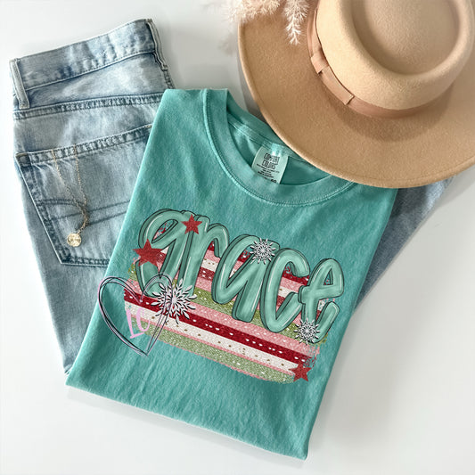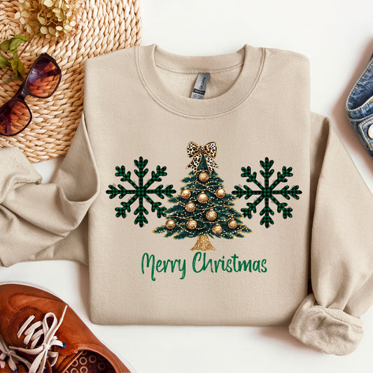 Merry Christmas- Gold Tree and Green Buffalo Check Snowflake