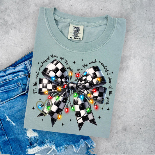 CHRISTMAS LIGHT CHECKERED BOW