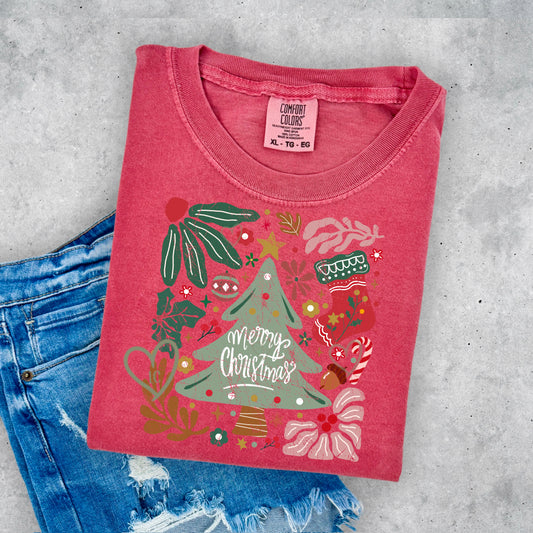 MERRY CHRISTMAS TREE/ BLACK OUTLINE