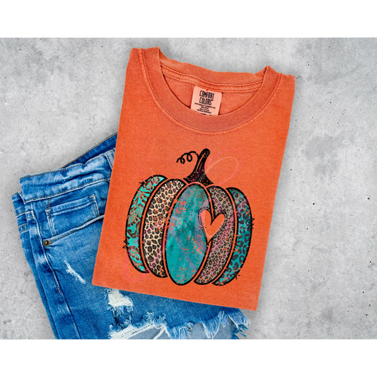 Teal/Leopard Pumpkin with Heart